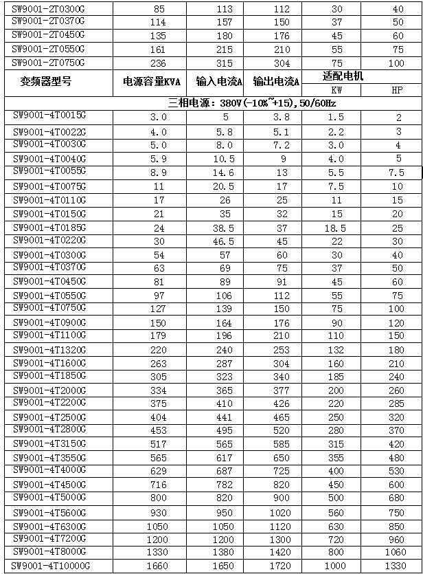 (注:0.4~3kW驅動器最高使用海拔為2000m,如需使用到海拔 2000m以上請聯系廠家)