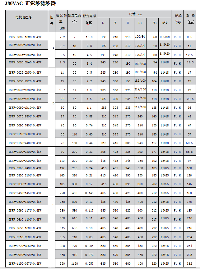 正弦波濾波器是在PWM變頻器驅(qū)動下,其開關(guān)頻率范圍在2-8kHz之間仍提供正弦波輸出電壓。在變頻器驅(qū)動應(yīng)用中,這種濾波器可以消除電機(jī)絕緣失效問題并通過消除與變頻器輸出波形相關(guān)的高dv/dt來減少電磁干擾。改善電機(jī)的性能和壽命,延長變頻器輸出距離,最長可達(dá)3KM。為保護(hù)電線電纜,使用正弦波濾波器可防止長引線驅(qū)動電機(jī)的過電壓問題。在其他能源應(yīng)用下,比如風(fēng)力發(fā)電機(jī),逆變器將電力通過升壓變壓器還原到實(shí)用的配電系統(tǒng),這種濾波器可以允許使用標(biāo)準(zhǔn)變壓器。滿載并在60Hz時給變壓器輸入的諧波電壓畸變是5%的話,那么滿載時給電機(jī)輸入的諧波電壓畸變一般就是5%。